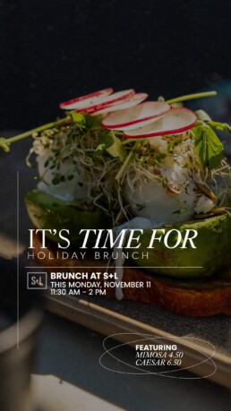 Join us for It’s Time for Holiday Brunch at S+L Abbotsford and S+L Langley on Monday, November 11th at 11:30am – 2:00pm. Whether you’re gathering with family or meeting up with friends, we’ve got the perfect spot for your holiday celebration.